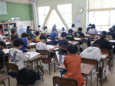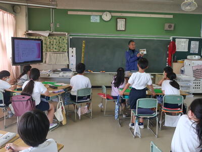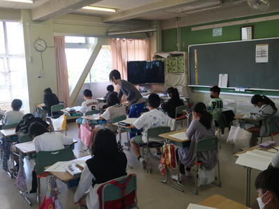4年生は、総合「ビオトープを見守ろう」の学習を始めています。今回は、「ビオトープはどのようなものか」「なぜ必要なのか」「どのような調べ方があるか」等についてお話をいただきました。子供たちは、メモを取り疑問に思ったことを質問しながらしっかり話を聞けました。自分の学習を広げていくきっかけになったようです。