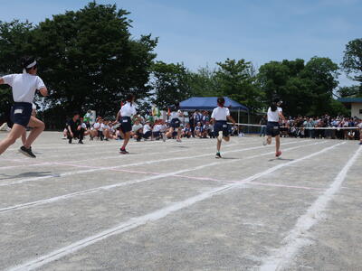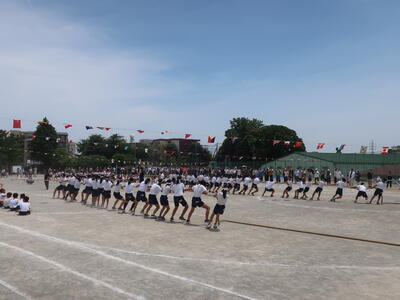天候にも恵まれ、晴天の下で子供たちは生き生きと笑顔で活動できました。2学年ごとに、個人走・団体競技・表現を行い、全校で、たたら音頭・大玉送り・選抜リレーを行いました。子供たち一人一人が授業で練習してきた成果を発揮して、全力で取り組むことができました。