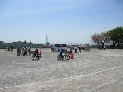 4月15日(月)に交通安全対策課の方々をお招きして交通安全教室を実施しました。横断歩道の渡り方や自転車の安全で正しい乗り方等を教えてもらいました。3年生は校庭に引いたコース上を実際に自転車に乗る等、体験をすることもできました。安全に気をつけてこれからも生活できるようにしていきます。