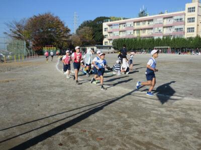 ポイントランを行いました。 投稿: 根岸小 (14:14) 11月28日(金)に、ポイントランを実施しました。ポイントランは、校庭のトラックにカラーコーンを20mおきに設置し、5分間で走ることができた距離を記録するものです。トラックを周回することで距離を計算するため、自身の記録の伸びを数字で確かめることができ、多くの児童が意欲的に取り組んでいました。全力で走っている姿がとても格好良かったです。