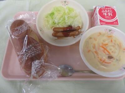 10月9日(金) 投稿: 根岸小 (13:27) 黒パン 牛乳 ウインナー ボイルキャベツ 豆乳クリームスープ 今日は、牛乳を使ったスープではなく、豆乳を使ったクリームスープでした。 今日のスープおいしい!と言ってよく食べていました。給食の残りもほとんどなくどのクラスもよく食べていました。